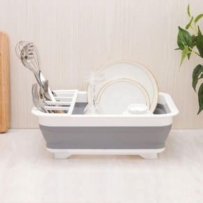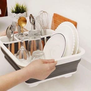 O escorredor portátil é um artigo essencial da cozinha todos os dias, possui espaço para acomodar os pratos, copos e talheres. Seu tamanho reduz em 3 vezes quando dobrado e é perfeito para quem não tem muito espaço e gosta de tudo muito bem organizado.
