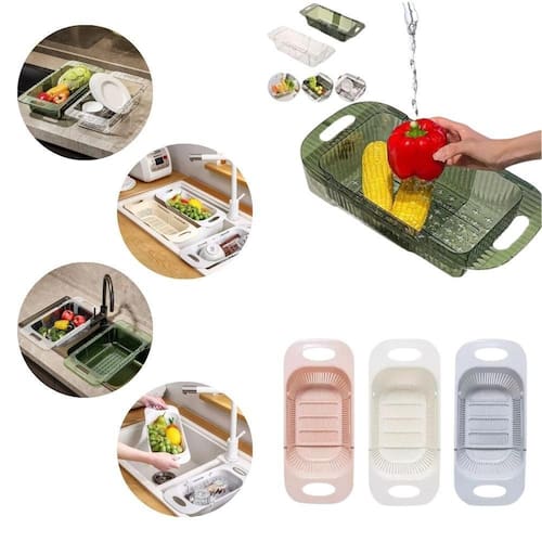 Escorredor Retrátil De Pia Ajustável Legumes Verduras Louça