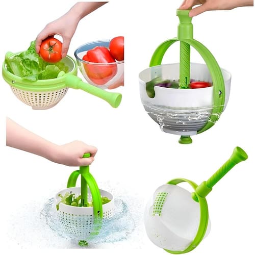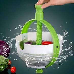 Escorredor Secador De Legumes Com Cabo Giratório Centrífuga Diga adeus aos legumes e verduras encharcados Nosso escorredor e secador com sistema de centrífuga e cabo giratório é a solução prática e eficiente que faltava na sua cozinha. Prepare saladas crocantes e saborosas em instantes, sem esforço e com resultados profissionais. Sistema de Centrífuga Eficiente: Remove o excesso de água dos seus legumes e verduras de forma rápida e eficaz, garantindo uma textura ideal para suas preparações. Cabo Giratório Ergonômico: Design inteligente que facilita a rotação da cesta interna com o mínimo de esforço, tornando o processo de secagem muito mais simples e confortável. Cesta Interna Removível: Facilita a lavagem dos legumes e verduras diretamente dentro do escorredor e a transferência para outros recipientes. Base Antiderrapante: Garante estabilidade durante o uso, evitando acidentes e proporcionando maior segurança. Material Durável e Seguro: Fabricado com materiais de alta qualidade, resistentes e livres de BPA, garantindo a segurança alimentar e a longa vida útil do produto. Fácil de Limpar: Design simples que permite uma higienização rápida e completa após o uso. Especificações Técnicas: - Modelo: Escorredor Secador com Cabo - Material: PP/ABS - Comprimento do cabo: 18cm - Dimensões: 39,5cm COMPRIMENTO x 21,5cm LARGURA x 12,5cm ALTURA 18cm DIÂMETRO - Cor: Verde com Branco Itens Inclusos: - 01x Escorredor Secador