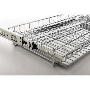 - Produzido em aço carbono com acabamento cromado - Espessura do arame: 4,00 mm - Capacidade: 10 pratos - Acessórios: Corrediças telescópicas de 250 mm zincadas já montadas no aramado, 1 bandeja em aço inox 430 e kit de parafusos para fixação no móvel - Aplicação: fixação lateral em módulo aéreo - Código: 7096 - Cromado - Marca: GTB Aramados - Garantia: 1 ano
