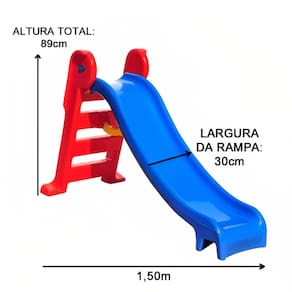 ESCORREGADOR MÉDIO Com escada de 03 (três) degraus. Prancha tipo tobogã; Bordas salientes para maior segurança das crianças; Pigmento que não desbota com sol e chuva, garantindo a resistência e durabilidade do produto; Material: Polietileno, atóxico, aditivado com anti UV; Medidas: (C) 1,55m x (L) 62cm x (A) 98cm; Processo de fabricação: Roto moldagem; Peso: 08 kg; Peso suportado: 30kg;