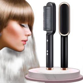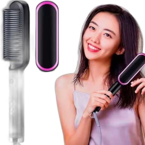 Escova Alisadora 3 em 1 Seca Modela Chapinha ESCOVA ALISADORA 3 EM 1 Experimente um jeito inovador de arrumar seus cabelos, de maneira rápida e fácil. Além de penteá-lo, você o deixará impecável em poucos minutos. O revestimento cerâmico nas cerdas da escova desempenha a dupla função de proteger o cabelo enquanto o molda e deixa-o liso e sem frizz em minutos. CONTEÚDO DA EMBALAGEM 1 Escova Pente Alisadora de Cabelo 1 Manual CARACTERÍSTICAS Design anti-queimadura: nenhum dano à pele ou à cabeça Cuidados com os cabelos com íons negativos: nenhum dano ao seu cabelo Aquecimento rápido em 30 segundos Fácil de usar: de um botão 5 níveis de temperatura ajustável de 130 a 200 graus Cabo giratório de 360 graus Economia de tempo com Tecnologia de Multiplacas Contém cerdas de cerâmica em formato V Potência de uma chapinha profissional Proteção contra queimaduras no couro cabeludo Fácil de manusear Produto leve e portátil Não marca o cabelo Design elegante, ergonômico e multifuncional Aquecimento rápido e efeito profissional Indicador de temperatura LED digital Temperatura uniforme em toda a superfície de aquecimento Controle de temperatura de 150C a 200C Indicado para uso doméstico e profissional ESPECIFICAÇÕES Potência: 45W Frequência nominal: 50Hz Voltagem: 110V/220V - Bivolt automático Material das placas: Cerâmica PTC Temperatura: 5 níveis 140C a 200C Peculiaridades: Design anti-queimadura: nenhum dano à pele ou à cabeça. A temperatura interna deste pente é de até 200 graus, e a temperatura externa deste pente não é superior a 50 graus. Não tenha medo de queimar a cabeça, a pele ou o rosto. Cuidados com os cabelos com íons negativos: nenhum dano ao seu cabelo, deixe seu cabelo naturalmente liso após o uso. Aquecimento rápido em 30 segundos. Fácil de usar: de um botão, fácil de operar. 5 níveis de temperatura ajustável de 130 a 200 graus, escolha o nível certo para você como quiser. Cabo giratório de 360 graus, não precisa se preocupar com a direção ao usar. Alisamento de cabelo: Aqueça primeiro, pegue uma mecha de cabelo com um pente alisador. Penteie o cabelo lentamente. Se você deseja obter o melhor resultado, repita o penteado várias vezes. Ean: 7905340403883