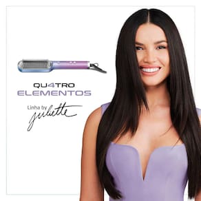 A Escova Alisadora da Linha by Juliette Qu4tro Elementos traz um revestimento especial enriquecido com infusão de Cerâmica, Titânio, Tourmaline e Nano Silver. Esses 4 elementos, juntos, protegem seus fios e garantem uma aparência mais saudável aos fios. A escova proporciona um alisamento instantâneo, deixando seus cabelos incrivelmente lisos em uma única passada. Imagine o liso perfeito que você sempre desejou, alcançado de forma rápida e sem esforço! Saiba mais sobre a EA-JU-03: