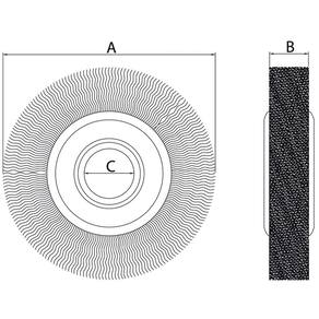 Escova Circular Arame Ondulado 6x1/2'' Tramontina PRO Tramontina - A linha de escovas da Tramontina PRO é utilizada para fazer a remoção de rebarbas, ferrugens, pinturas, carepas e respingos de solda, proporcionando acabamento em aços, madeiras, tubos e borrachas. Orientações Filamentos em aço especial temperados./ndiâmetro do filamento de 0,3 mm./nadaptadores 1/2, 5/8 e 3/4./nen 1083./nutilizadas nas aplicações de remoção de rebarbas, ferrugem e pintura de nível leve em aços, madeira e borracha./nutilizadas em moto esmeril com rotação até 6000 rpm./nas ferramentas são submetidas a testes de aplicação prática para garantir sua resistência mecânica em uso intenso. /nas ferramentas são produzidas e testadas conforme normas específicas. Observações Use óculos, luvas e outros equipamentos de proteção de acordo com a tarefa a ser executada. /narmazene as escovas em local protegido de umidade, condensação, chuva, água, ácido ou outros líquidos agressivos e vapores que possam causar oxidação nos filamentos e partes metálicas das escovas. /ntenha cuidado com a ponta dos arames, pois eles podem ferir o usuário. /nnunca use escovas que apresentem defeitos. /nnão altere as características da escova. /nuse as escovas somente nas máquinas recomendadas. /nnunca ultrapasse a rotação máxima da escova. /nsempre que possível coloque o corpo de modo a evitar ser atingido pelas partículas projetadas durante a escovação. /nnão use roupas largas. /no cabelo longo deve ser protegido por uma rede e capacete. /nevite pressão excessiva da escova na peça. O excesso reduz a eficiência da escova e pode provocar na máquina. /nproteja as mãos de todas as partes rotativas durante o processo de escovação. /narmazene em local limpo e seco. Características Gerais EAN13 7891114158052 DUN14 17891114158059 NCM 9603.50.00 Peso Líquido 0,3000 kg. Peso Bruto 0,3750 kg. Metragem 0,001388 m. Dimensões Embalagem Compr. X Larg. X Alt. 250x 185x 30 mm. Dimensões Produto Compr. X Larg. X Alt. 150x 12x 31 mm. Dimensão Extra A 150,0 mm. Dimensão Extra B 12,7 mm. Dimensão Extra C 31,7 mm. Características Gerais do Produto: : 1 Ano Marca: Não Informado