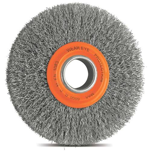 A linha de escovas da Tramontina PRO é utilizada para fazer a remoção de rebarbas, ferrugens, pinturas, carepas e respingos de solda, proporcionando acabamento em aços, madeiras, tubos e borrachas. Orientações Filamentos em aço especial temperados.Diâmetro do filamento de 0,3 mm.Adaptadores 1/2", 5/8" e 3/4".EN 1083.Utilizadas nas aplicações de remoção de rebarbas, ferrugem e pintura de nível leve em aços, madeira e borracha.Utilizadas em moto esmeril com rotação até 6000 rpm.As ferramentas são submetidas a testes de aplicação prática para garantir sua resistência mecânica em uso intenso. As ferramentas são produzidas e testadas conforme normas específicas. Observações Use óculos, luvas e outros equipamentos de proteção de acordo com a tarefa a ser executada. Armazene as escovas em local protegido de umidade, condensação, chuva, água, ácido ou outros líquidos agressivos e vapores que possam causar oxidação nos filamentos e partes metálicas das escovas. Tenha cuidado com a ponta dos arames, pois eles podem ferir o usuário. Nunca use escovas que apresentem defeitos. Não altere as características da escova. Use as escovas somente nas máquinas recomendadas. Nunca ultrapasse a rotação máxima da escova. Sempre que possível coloque o corpo de modo a evitar ser atingido pelas partículas projetadas durante a escovação. Não use roupas largas. O cabelo longo deve ser protegido por uma rede e capacete. Evite pressão excessiva da escova na peça. O excesso de pressão reduz a eficiência da escova e pode provocar avarias na máquina. Proteja as mãos de todas as partes rotativas durante o processo de escovação. Armazene em local limpo e seco. Características Gerais EAN13 7891114158052 DUN14 17891114158059 NCM 9603.50.00 Peso Líquido 0,3000 kg. Peso Bruto 0,3750 kg. Metragem 0,001388 m³. Dimensões Embalagem (Compr. X Larg. X Alt.) 250x 185x 30 mm. Dimensões Produto (Compr. X Larg. X Alt.) 150x 12x 31 mm. Dimensão Extra A 150,0 mm. Dimensão Extra B 12,7 mm. Dimensão Extra C 31,7 mm.