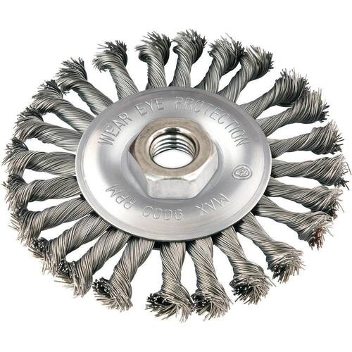 Conteúdo da embalagem1 Escova circular com roscaAplicações e dicas de usoIndicada para limpeza de peças em geral. Utilizada em esmerilhadeira angular.Destaques e diferenciaisPossui aço torcido que proporciona maior poder de remoção DETALHES TÉCNICOS Material/acabamento das cerdas da escova: Aço carbono/polido Tipo de cerdas da escova: Torcida Diâmetro externo da escova pol : 4.1/2 Espessura da escova pol : 1/2 Diâmetro da rosca da escova: M-14 Rotação máxima rpm : 12500 rpm Marca: Não Informado