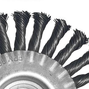 Eficiência na Remoção de Resíduos: Seu design circular trançado permite uma ação uniforme e eficaz sobre as superfícies, facilitando a remoção de carepas e resíduos, proporcionando um acabamento profissional.