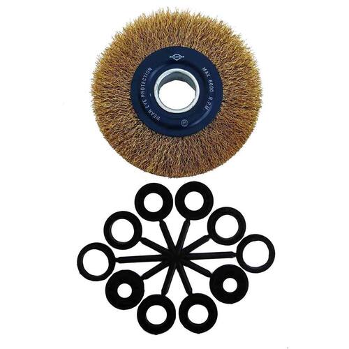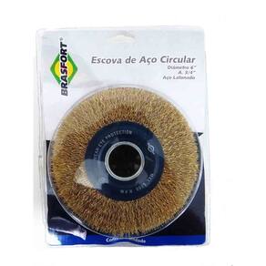 Escova de aço circular, com diâmetro de 6 polegadas, A. 3/4 pol. Ideal para limpar superfícies em geral, principalmente aquelas com muita oxidação. Marca: BRASFORT Características: -Diâmetro 6 polegadas. A. 3/4'. -Composição: Aço latonado. -Altura: 19 mm. -Furo: 32 mm. -Fio ondulado. -Acompanha buchas para encaixe universal. Conteúdo: -1 Escova de aço circular. -1 Bucha para encaixe universal. Aplicação: Ideal para limpar superfícies em geral, principalmente aquelas com muita oxidação. Código: 7247 Ean: 7898464734981