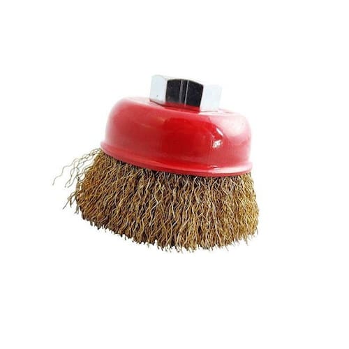 Escova de aço com cerdas flexíveis para limpeza de peças, remoção de ferrugens, vernizes e crostas de soldas sem danificar a peça obra. imagem Meramente Ilustrativa </br> Dados Técnicos