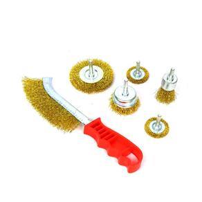 R: A Escova de Aço com 6 Peças para Furadeira Eda é composta por aço, chapa de aço e plástico PE.