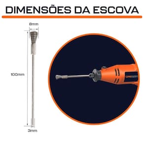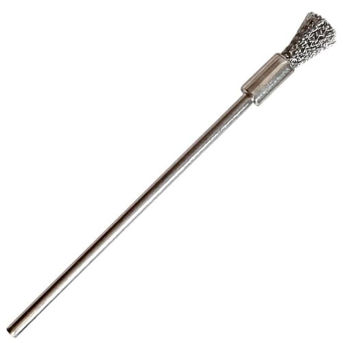 Escova de Aço Inox Rotativa Longa 100mm Haste 3mm para Micro Retíficas Dremax - Marca: Dremax - Referência: EC006 - Material das cerdas da escova: Aço Inox - Diâmetro da haste: 3mm - Comprimento total: 100mm - Diâmetro da escova: 8mm - Indicada para limpezas e acabamentos em superfícies - Uso em micro retíficas de qualquer marca com pinça de 3mm - Indicada para limpeza sem risco em metais macios como ouro, bronze, cobre e latão - Seu formato o torna adequado para a limpeza de superfícies planas, além de ser perfeito para entrar em lugares difíceis de alcançar. - Pode ser usada também em trabalhos com vidro, pedra, madeira, plásticos e materiais similares - Garantia: 90 dias contra defeitos de fabricação A DREMAX é a primeira e única marca brasileira dedicada exclusivamente às micro retíficas, acessórios e acoplamentos para esta indispensável ferramenta. Seja para trabalhos de precisão, artesanato, modelagem ou reparos, a DREMAX tem o produto certo para você. Marca: Dremax