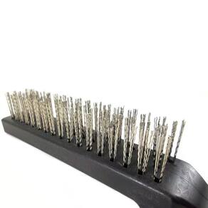 Possui cerdas em latão, proporcionando resistência à oxidação. Escovas para o uso manual, com cabo plástico. Indicada para limpeza de peças em geral. Aço Inox.