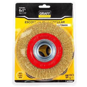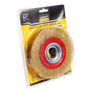 Marca: Graff Vantage A escova de aço circular é a mais comum para uso em moto esmeril e equipamentos elétricos. Ela existe em vários tamanhos, pra ser encaixada em furadeiras, esmerilhadeiras e lixadeiras, e serve tanto pra limpeza como pra remoção de ferrugens, vernizes e tintas. Marca: Graff