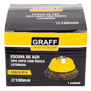 Escova De Aço Latonado Tipo Copo Com Rosca 571,0015 - Graff A Escova de Aço Latonado tipo Copo com Rosca é usada para limpar suavemente superfícies de metal, ferrugem e sujeira. E serve tanto pra limpeza como pra remoção de ferrugens, vernizes e tintas. Sendo mais flexível que as outras e também serve pra polir, lixar e eliminar tintas e ferragens.