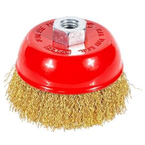 A Escova de Aço Latonado tipo Copo com Rosca é usada para limpar suavemente superfícies de metal, ferrugem e sujeira. E serve tanto pra limpeza como pra remoção de ferrugens, vernizes e tintas. Sendo mais flexível que as outras e também serve pra polir, lixar e eliminar tintas e ferragens. Marca: Graff