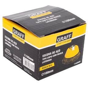 Escova De Aço Latonado Tipo Copo Com Rosca 571,0015 - Graff A Escova de Aço Latonado tipo Copo com Rosca é usada para limpar suavemente superfícies de metal, ferrugem e sujeira. E serve tanto pra limpeza como pra remoção de ferrugens, vernizes e tintas. Sendo mais flexível que as outras e também serve pra polir, lixar e eliminar tintas e ferragens.