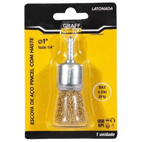 Escova De Aço Latonado Tipo Pincel Com Haste 571,0013 Graff A Escova de Aço Latonado Tipo Pincel destaca-se como uma ferramenta especializada para diversas aplicações. Projetada para remoção eficaz de rebarbas, ferrugem e pintura em nível leve, oferece versatilidade em trabalhos com aços, madeira e borracha. Compatível com furadeiras ou micro retíficas, proporciona resultados precisos e eficientes.