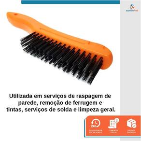 Escova manual aço 4X16 - StarferEscova de aço manual com cabo em plástico ABS.Cerdas em aço carbono com feixes de 4 x 16 fileiras.Utilizada para escovação de superficies ou peças.Utilizada em serviços de raspagem de parede, remoção de ferrugem e tintas, serviços de solda e limpeza geral.• Comprimento: 245 mm• Altura do Fio: 30 mmRef.: 5031508Marca: Starfer