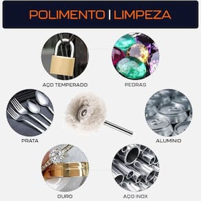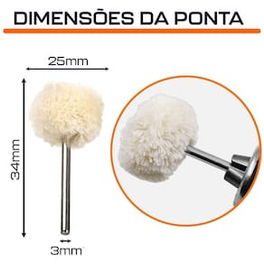 Escova de Polimento Haste 3mm Cotton para Polir com Micro Retíficas e Mini Lixadeiras Dremax - Marca: Dremax - Modelo: PP011 - Diâmetro 25mm - Diâmetro da haste: 3mm - Uso em micro retíficas de qualquer marca com pinça de 3mm - Roda 100% algodão natural - Indicada para polimento de joias, metais ferrosos ou não ferrosos, aço, aço inoxidável, alumínio, bronze, cobre, latão e plástico em geral - Proporciona maior rendimento durante o trabalho - Recomenda-se a utilização com pasta para polimento - Garantia: 90 dias contra defeitos de fabricação A DREMAX é a primeira e única marca brasileira dedicada exclusivamente às micro retíficas, acessórios e acoplamentos para esta indispensável ferramenta. Seja para trabalhos de precisão, artesanato, modelagem ou reparos, a DREMAX tem o produto certo para você. Marca: Dremax