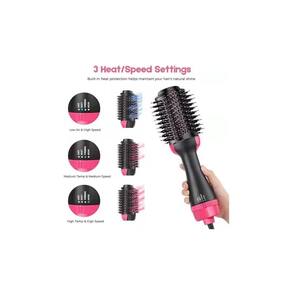 Potência de um secador, volume de um estilizador. Menos tempo, menos prejudicial Design de escova oval\ nFormato exclusivo para alisar o cabelo, enquanto bordas arredondadas criam volume3\ nConfigurações de calor para flexibilidade de design\ nMistura de cerdas\ nA escova foi projetada com parafuso de náilon e cerdas tufadas para facilitar o desembaraçamento e melhor aderência do cabelo\ nPara resultados mais rápidos, seca a toalha de cabelo para remover o excesso de água e depois passa um pente pelo cabelo úmido até ângulo para melhores resultados. Separe o cabelo em seções gerenciáveis. Para explosões suaves, coloque o volumizador perto das raízes e escove até as pontas. O pino de náilon misturado com pontas arredondadas se desfaz rapidamente, enquanto as cerdas tufadas com tecnologia de javali empurram suavemente o cabelo para alisá-lo. Para sulcos volumosos, coloque o volumizador sob o cabelo perto das raízes e enrole para fora até as pontas. Para uma elevação adicional nas raízes, mantenha o volume por 2 a 3 segundos abaixo das raízes. Especificação: [Tensão/Potência]: 110/220v, potência nominal 1000w [Material de aquecimento]: Cabo de resistência [Número de segmentos]: três arquivos, temperatura normal de alta qualidade, ar quente de baixa qualidade, ar quente de alta qualidade [comprimento do cabo de alimentação]: 2m, rotação de 360 graus [Especificações do plugue]: Chile [Temperatura de saída de ar]: 120° C