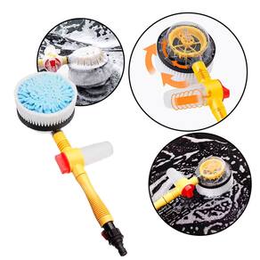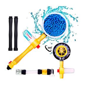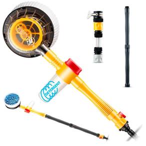 Escova de Limpeza Giratória Fácil encaixe na mangueira Com 2 peças de extensão do cabo Gira com a pressão da água Escova em Veludo Chenille [Microfibra] Dispenser de Sabão Embutido com Dosador Possui Registro para Pressão da água Sem Vazamento de Água 3 Ajustes de Velocidade 100cm de comprimento totais Cabo com Chave Registro: 42cm Extensões de Cabo: 58cm