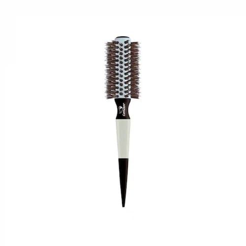 As cerdas, naturais de javali e sintéticas, possuem dupla altura, o que permite melhor acabamento até nos cabelos mais difíceis. Além disso, o entufamento em fileiras retas facilita a escovação, agilizando o alisamento e a modelagem dos cabelos.