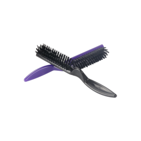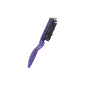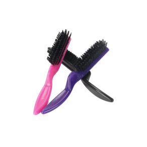 Escova com cabo em resina plástica e cerdas em BPT, com cinco fileiras de cerdas, ideal para fazer penteados e acentar raízes crespas.