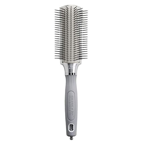 Ideal for short to medium hair, this brush has ion-charged bristles and a cushion base for shine and detangling. Vents boost airflow for faster drying, while the ergonomic handle and retractable pick allow snag-free styling. - Possui um cilindro de cerâmica ventilado para um estilo mais rápido e consistente - Inclui um design de material carregado por íons - Ajuda a suavizar e dar brilho ao cabelo