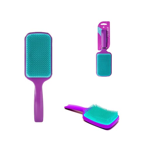 Esta escova para cabelos permite desembaraçar sem puxar ou quebrar os fios. Seu sistema de cerdas em duas alturas ajuda a distribuir óleos naturais da raiz do cabelo por toda a extensão do fio, até as pontas. Ela massageia o couro cabeludo e com isso estimula a circulação do sangue e oxigenação dos folículos capilares. Esse processo é essencial para a saúde do cabelo.