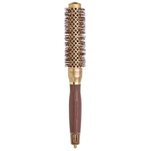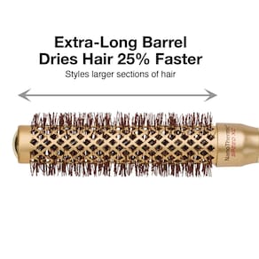 Escova térmica de cano longo com revestimento cerâmico e tecnologia iônica. Aqueça com o calor do secador. Esta escova não é elétrica