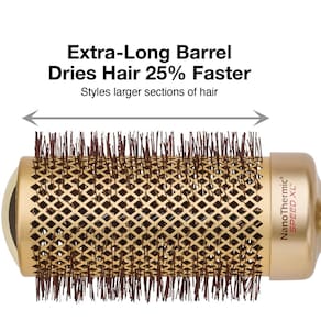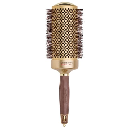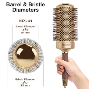 Escova térmica de cano longo com revestimento cerâmico e tecnologia iônica. Aqueça com o calor do secador. Esta escova não é elétrica