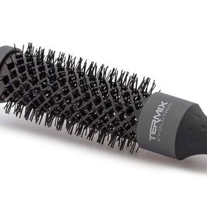 Recursos da escova de cabelo Termix Salon: Feito com Teflon. Funciona como condutor de calor e repelente de sujeira. Sujeira e produtos químicos não grudam no cabelo, então a escovação é muito mais fácil. Secagem mais rápida. Distribui melhor o calor do que uma escova de cerâmica. Isso significa que seu cabelo secará mais rápido durante o penteado. Mais resistente. O Teflon oferece resistência máxima contra produtos químicos prejudiciais. Mais brilho. Pesquisas especializadas descobriram que um pincel de teflon aumenta o brilho em quase 30%. Buracos rombóides. Graças à estrutura dos orifícios de ventilação, a superfície do tubo aumenta em 10%, o que reduz o tempo de secagem em até 30%. Alça ergonômica. A alça é antiaderente, evitando que os cabelos fiquem presos na alça. Cerdas resistentes ao calor até 300ºC e transmissão de calor. Os pincéis Termix Evolution possuem algumas das cerdas mais fortes do mercado, as cerdas especiais são ionizadas e antiestáticas para um resultado ideal.