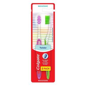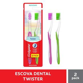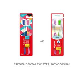 A escova de dente Colgate Twister tem cerdas macias para uma limpeza efetiva e delicada, cabeça compacta para melhor alcance dos dentes posteriores e limpador de língu