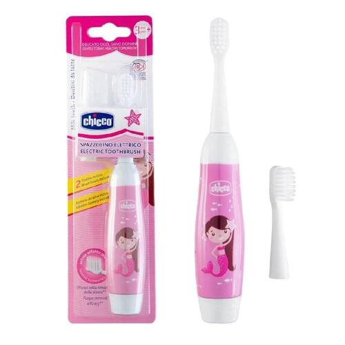 A Escova de Dentes Elétrica da Chicco vai fazer o momento da escovação do seu filho mais divertido Fabricada pelo que há de mais moderno no Observatório Chicco, a escova de dentes elétrica vem com uma cabeça de escova vibratória suave. Suas cerdas de tecnologia Cônica com extremidades ultrafinas tem uma ação delicada no esmalte e nas gengivas sensíveis dos pequenos. Tem tamanho ideal para maior acesso aos espaços gengivais livres, removendo placas de forma melhor do que as escovas convencionais. Acompanha uma cabeça de escova para substituição. Funciona com bateria AA de 1,5v. Imagens ilustrativas.Código de Barras: 8058664146277Marca: ChiccoModelo: Escova de Dente Eletrica Infantil Sereia RosaIdade: 3+ anosAlimentação: 1 pilha AAMedida: 19cm