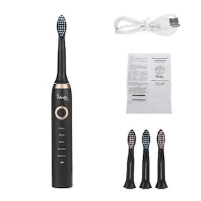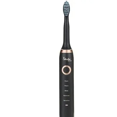 Escova de Dente Elétrica Recarregável 5 Velocidades +3 Refis Escova de Dente Elétrica Ultrassônica Resistente a Água 5 Modos de Limpeza e 3 Cabeças Refil Ideal para prevenção de cáries e auxilia na saúde das gengivas. A tecnologia sônica avançada vibra a cabeça da escova para quebrar e remover a placa com mais eficácia do que a escovagem manual, deixando você com sensação de limpeza, juntamente com dentes brancos e hálito mais fresco. É resistente a água, pode ser colocado na água por curto período de tempo. Com 5 modos de escovação, função de desligamento automático - Modo de carregamento: carregamento USB - Potência: 2w - Tempo de carregamento: cerca de 6 horas - Tensão de trabalho: 3.7v - Tensão de trabalho da interface usb: 5v - Bateria: 600mAh Acompanha embalagem: 1 x Escova Eletrônica 3 x Cabeças Refil 1 x Cabo de Carregamento usb Obs: pressionar por alguns segundos para ligar o aparelho.