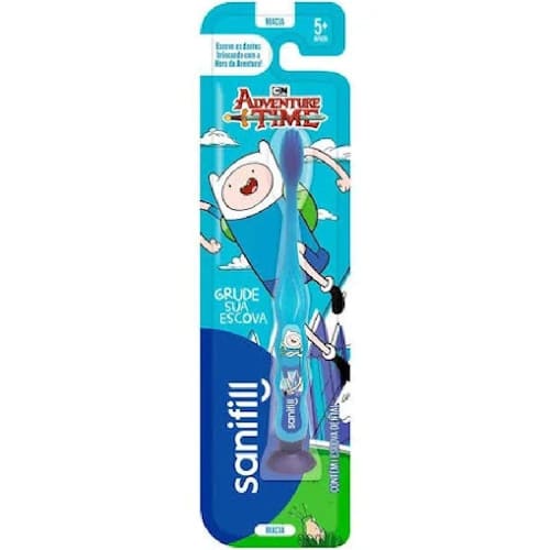 A Escova de Dente Infantil Sanifill Adventure Time foi desenvolvida especialmente para as crianças a partir de 5 anos. Ela possui cerdas macias e arredondadas para uma escovação que limpa gentilmente os dentes, evitando placas bacterianas e cáries deixando a higiene bucal do seu filho sempre em dia. Tem cabo ergonômico e pequeno, o que facilita o manuseio pelas mãozinhas das crianças; além disso tem ventosas para grudar a escova em qualquer superfície.