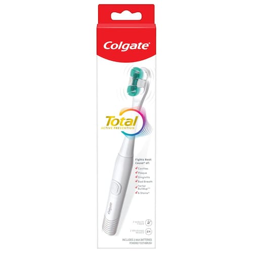 - Inclui uma (1) escova de dentes Colgate alimentada por bateria total com duas pilhas AAA incluídas, escova de dentes branca