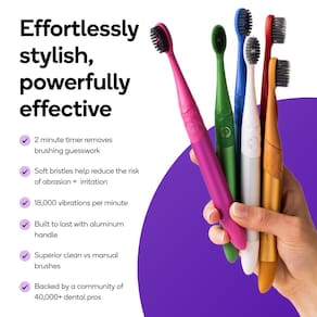 - SONIC POWERED WHITENING: Sua escova de dentes manual está um pouco... básica? A escova de dentes BURST Nova Sonic é o seu caminho acessível para melhorar a saúde bucal. Sua operação com um clique ativa um poderoso modo de clareamento com 18.000 vibrações por minuto, aprimorando seu sorriso para um acabamento mais branco e brilhante.