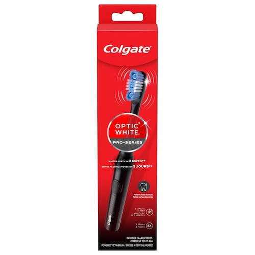 Colgate Escova de dentes preta 360 Optic White Pro-Series Battery - Escova de dentes elétrica One Colgate Optic White Pro Series, preta - Escova de dentes sônica alimentada por bateria - O copo de polimento de borracha remove mais manchas para um sorriso brilhante* (*vs. uma escova de dentes comum) - Cabeça de escova substituível - Temporizador de 2 minutos para ajudar você a limpar melhor