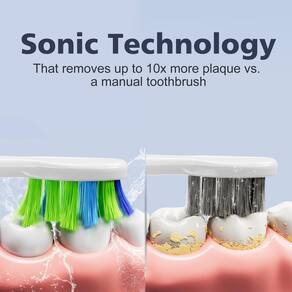 7AM2M A escova de dentes elétrica Sonic adota a tecnologia sônica avançada, produz 40.000 pinceladas por círculo para uma poderosa ação de limpeza dinâmica. O efeito de limpeza é mais óbvio do que escovas de dentes manuais e oferece uma escovação extra suave e protege o esmalte dos dentes do que uma escova de dentes rotativa. Com o tempo, as cerdas azuis em ambas as extremidades irão gradualmente desbotar para branco, notificando você para prestar atenção na substituição da cabeça da escova. Experimente. Uma semana de uso pode ajudar a reduzir a placa dentária e você terá um ambiente oral saudável. Duas semanas de uso podem melhorar completamente sua saúde bucal e ajudá-lo a sorrir com confiança:) - Limpeza profunda, tecnologia avançada: a escova de dentes elétrica recentemente atualizada adota a mais recente tecnologia sônica, com até 40.000 vibrações de alta frequência por minuto, que podem penetrar o líquido profundamente entre os dentes e na linha da gengiva para excelente limpeza e remoção. Remove 100% a placa, clareia os dentes e melhora a saúde bucal em duas semanas, com resultados superiores às escovas de dentes manuais, dando a você um sorriso mais saudável e brilhante. - 5 modos de escovação para todas as necessidades de higiene bucal: limpo, branco, polido, suave, macio, 5 modos são adequados para diferentes condições de dentes e gengivas. Você pode escolher diferentes modos de acordo com sua preferência e conselhos do dentista para tornar cada escovação uma experiência agradável. - 8 cabeças de substituição para 2 anos de uso: o design "W" se ajusta à forma dos seus dentes e limpa completamente as gengivas e áreas difíceis de alcançar. Vem com 8 cabeças de escova de substituição que duram até 24 meses, eliminando a necessidade de pedir novas cabeças de escova com frequência. As cerdas azuis desbotadas permitem que você saiba quando substituir a cabeça da escova. - Temporizador de notificação vibratório inteligente – temporizador integrado de 2 minutos para garantir o tempo de escovação científica. Ele pausa a cada 30 segundos para lembrar você de mudar a área de escovação. Desenvolve hábitos saudáveis de escovação dos dentes. O que é altamente recomendado por dentistas profissionais, como uma maneira correta de escovar. - 90 dias de vida útil da bateria e conveniência de viagem: a escova de dentes de viagem dura até 90 dias com uma única carga, diga adeus ao incômodo de carregamento frequente. Equipado com um organizador de viagem, perfeito para viagens de negócios e viagens, para que você possa desfrutar de uma experiência de limpeza oral eficiente e confortável a qualquer hora, em qualquer lugar.
