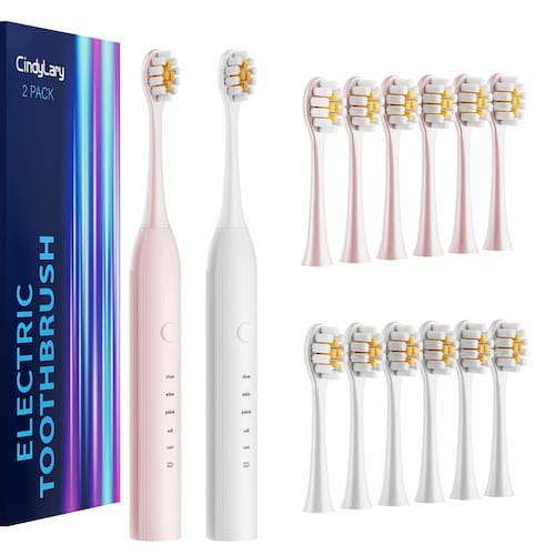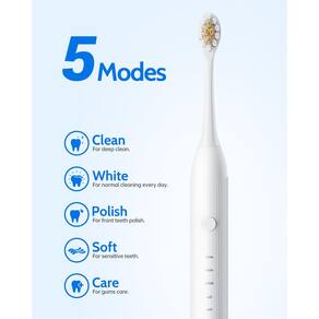Pacote com 1: 2 escovas de dentes elétricas: nosso pacote inclui 2 escovas de dentes elétricas sônicas e 12 cabeças de escova de substituição de cerdas macias. Prometemos: garantia de 1 ano, se você tiver algum problema, , nós lhe daremos um atendimento ao cliente satisfatório. 2: Limpeza sônica potente: nova escova de dentes elétrica atualizada com a mais recente tecnologia sônica. A frequência de vibração pode chegar até 38.000 vezes por minuto, ao longo da linha da gengiva para limpeza excepcional e remoção de placas, clareando seus dentes e melhorando sua saúde bucal em duas semanas melhor do que uma escova de dentes manual. 3: O conjunto inclui 12 cabeças de escova de substituição: capaz de limpar profundamente as lacunas dos dentes; o design da extremidade arredondada é suave e seguro para as gengivas. As escovas de dentes elétricas para adultos e crianças estão equipadas com 12 cabeças de escova e têm uma vida útil de 24 meses. Você não precisa fazer compras frequentes. Lembre-se de verificar se o saco de vedação da cabeça da escova foi aberto antes de usar. Cada uma das nossas cabeças de escova é embalada individualmente. As cerdas podem deformar durante o transporte. Em água morna acima de 48 graus, as cerdas retornarão ao seu estado autêntico em 20 segundos. 4:5 modos de escovagem de alto desempenho: limpeza (forte), clareamento (suave), polimento (forte frequência de reversão), macio (frequência de reversão suave) e cuidado (macio), adequado para diferentes condições de dentes e gengivas, para que você possa escolher diferentes modos de acordo com suas preferências e conselhos do dentista. Em comparação com outras escovas de dentes, pode remover 10 vezes mais placa em áreas difíceis de alcançar, alcançando uma limpeza profunda. Temporizador de 5: 2 minutos e lembrete de pausa de 30 segundos: equipado com um temporizador inteligente de 2 minutos integrado, a limpeza dos dentes é mais eficiente e abrangente. A cada 30 segundos, ele lembra você de passar para o próximo quadrante da sua boca, o que leva um total de 2 minutos (4 quadrantes). Este é o método de escovação recomendado por dentistas profissionais. Você também pode pressionar e segurar o botão por 2 segundos para desligar a escova de dentes elétrica em qualquer modo. - Pacote com 2 escovas de dentes elétricas: nosso pacote inclui 2 escovas de dentes elétricas sônicas e 12 cabeças de escova de substituição de cerdas macias. Prometemos: garantia de 1 ano, se você tiver algum problema, , forneceremos um atendimento ao cliente satisfatório. - Limpeza sônica potente: nova escova de dentes elétrica atualizada com a mais recente tecnologia sônica. A frequência de vibração pode alcançar até 38.000 vezes por minuto, ao longo da linha da gengiva para uma limpeza excepcional e remove 100% das placas, clareando seus dentes e melhorando sua saúde bucal em duas semanas melhor do que uma escova de dentes manual. - O conjunto inclui 12 cabeças de escova de substituição: capaz de limpar profundamente as lacunas dos dentes; o design da extremidade arredondada é suave e seguro para as gengivas. As escovas de dentes elétricas para adultos e crianças estão equipadas com 12 cabeças de escova e têm uma vida útil de 24 meses. Você não precisa fazer compras frequentes. Lembre-se de verificar se o saco de vedação da cabeça da escova foi aberto antes de usar. Cada uma das nossas cabeças de escova é embalada individualmente. As cerdas podem deformar durante o transporte. Em água morna acima de 48 graus, as cerdas retornarão ao seu estado autêntico em 20 segundos. - 5 modos de escovagem de alto desempenho: limpeza (forte), clareamento (suave), polimento (forte frequência de reversão), macio (frequência de reversão suave) e cuidado (macio), adequado para diferentes condições de dentes e gengivas, para que você possa escolher diferentes modos de acordo com suas preferências e conselhos do dentista. Em comparação com outras escovas de dentes, pode remover 10 vezes mais placa em áreas difíceis de alcançar, alcançando uma limpeza profunda. - Temporizador de 2 minutos e lembrete de pausa de 30 segundos: equipado com um temporizador inteligente de 2 minutos integrado, a limpeza dos dentes é mais eficiente e abrangente. A cada 30 segundos, ele lembra você de passar para o próximo quadrante da sua boca, o que leva um total de 2 minutos (4 quadrantes). Este é o método de escovação recomendado por dentistas profissionais. Você também pode pressionar e segurar o botão por 2 segundos para desligar a escova de dentes elétrica em qualquer modo.