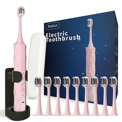 Escova de dentes elétrica Sonicare - Novo estilo: Escova de dentes elétrica diamante - Cuidados bucais personalizados: esta escova de dentes elétrica oferece 5 modos de limpeza personalizáveis - limpo, branco, massagem, sensível e limpador de língua - projetada para atender às suas necessidades exclusivas de higiene bucal, permitindo que você atenda precisamente áreas de preocupação para uma saúde bucal ideal. - Design ergonômico para todas as idades: cuidadosamente projetada com ergonomia excepcional, esta escova de dentes elétrica premium cabe confortavelmente na mão, permitindo manobrabilidade sem esforço ao redor da boca para usuários de todas as idades, de crianças a adultos. - Potência avançada de limpeza sônica: alimentada por um motor reforçado com metal que gera até 42.000 movimentos por minuto, a tecnologia sônica avançada desta escova de dentes supera as escovas elétricas tradicionais, desalojando efetivamente até mesmo as placas mais teimosas e partículas de alimentos para uma limpeza profunda e completa. - Desempenho de longa duração: este conjunto abrangente inclui 10 cabeças de escova de substituição (cada uma com duração de até 3 meses), um estojo de viagem, cabo de carregamento USB, manual do usuário e suporte, garantindo cuidados bucais sem complicações por até 30 meses sem a necessidade constante de comprar novas cabeças de escova.