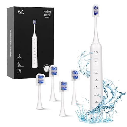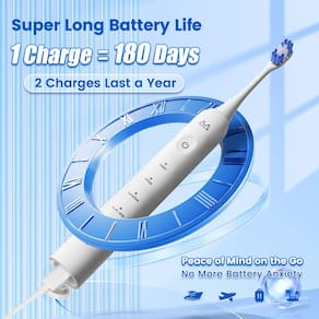 Uma escova de dentes elétrica sônica oferece várias vantagens sobre uma escova de dentes manual regular, graças às suas vibrações de alta velocidade que geram fluxo de água dinâmico. Este recurso exclusivo oferece poder de limpeza superior, removendo efetivamente placas e detritos da superfície dos seus dentes. Além disso, alcança áreas difíceis de limpar com uma escova manual, como os espaços entre os dentes, ao longo da linha da gengiva e nas ranhuras dos dentes, garantindo que a pasta de dente alcance todas as partes dos seus dentes, oferecendo proteção completa. - Um grande salto na vida útil da bateria: esta escova de dentes elétrica possui uma bateria de alta qualidade que oferece até 180 dias de uso (com base em dois usos de 2 minutos por dia) em uma carga de 4 horas. Feita para durar, a escova de dentes sônica mantém o desempenho ideal durante anos de carregamento repetido, superando produtos semelhantes. Com uma bateria de longa duração, esta escova de dentes elétrica sônica oferece tranquilidade em movimento — não há necessidade de carregar um carregador ou se preocupar com falta de energia. Basta pegar e ir! - Botão sensível à pressão sem costura – elegância que dura: esta escova de dentes elétrica recarregável branca possui um botão sensível à pressão de ponta, perfeitamente integrado à alça para um visual elegante e minimalista. O design do botão evita a ativação acidental e resiste ao desgaste do uso frequente, durando 5 vezes mais do que um botão padrão. A elegante escova de dentes automática adiciona um toque de elegância moderna à decoração do seu banheiro. - Tecnologia sônica avançada – Perfeitamente projetada para limpeza: alimentada por um motor Maglev de última geração, esta escova de dentes elétrica para adultos e adolescentes proporciona até 48.000 movimentos de escova por minuto, gerando microbolhas e fluxos de água finos que alcançam profundamente os bolsos das gengivas, lacunas dentárias e fissuras, para remover 10x placas e manchas, distribuindo os dentes. pasta para proteção superior. Desfrute de um nível de limpeza e eficiência como nunca antes em sua rotina de cuidados dentários! - IPX8 à prova d'água e design ergonômico: esta escova de dentes elétrica classificada com um padrão à prova d'água IPX8 oferece resistência superior à água para enxágue seguro e uso no chuveiro. A alça ergonômica e antiderrapante garante uma aderência confortável e segura. Feita de materiais de alta qualidade, esta escova de dentes vibratória é feita para durar, garantindo durabilidade e desempenho confiável. - 5 modos de limpeza personalizáveis: escolha entre cinco modos: limpo, branco, sensível, cuidado das gengivas e polimento - para personalizar sua experiência de escovação. Se você precisa de cuidados delicados, um aumento de clareamento ou uma limpeza profunda, esta maravilhosa escova de dentes recarregável oferece uma solução personalizada para todas as necessidades de higiene bucal. - Temporizador embutido, motor silencioso: a escova de dentes inteligente tem um temporizador de 2 minutos com intervalos de 30 segundos que garante que você escove o tempo ideal, promovendo os melhores hábitos de cuidados dentários recomendados por profissionais orais. Além disso, a escova de dentes eletrônica tem um motor silencioso que opera a menos de 55 dB, garantindo uma experiência de escovação tranquila. - O que vem na caixa: o pacote inclui 1 alça de escova de dentes elétrica branca, 1 cabo de carregamento USB-C, 1 manual do usuário e 4 cabeças de escova de dentes de alta qualidade que duram um ano inteiro (em forma de W e 2 em forma de C). Feitas com cerdas de ponta redonda de grau alimentício que não soltam, essas cabeças de escova proporcionam uma limpeza suave e completa, protegendo o esmalte e as gengivas sensíveis dos dentes.