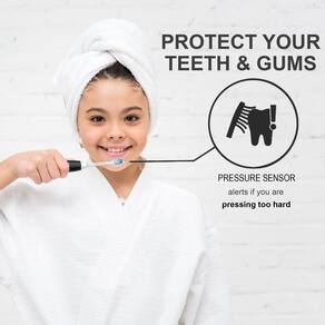 - O sensor de pressão protege os dentes e gengivas do excesso de pressão de escovação enquanto