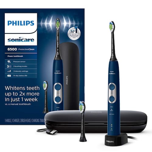 Escova de dentes elétrica recarregável PHILIPS Sonicare ProtectiveClean 6500 com estojo de viagem de carregamento e cabeça de escova extra, azul marinho, HX6462/07
