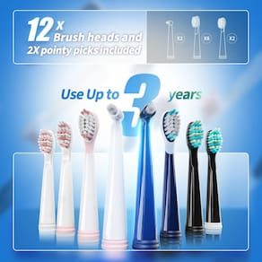 Pacote com 2 escovas de dentes sônicas, escova de dentes elétrica para adultos com 40.000 VPM, 5 modos, 12 cabeças de escova, 2 caixas de viagem, 2 escovas de dentes sônicas, carga mínima de 4 horas, 30 dias - preto e rosa - Alta vibração de 40.000 VPM – pacote com 2 escovas de dentes elétricas sônicas equipadas com motor elétrico líder mundial para gerar 40.000 batidas por minuto e, assim, dissolver a sujeira profunda dos dentes de forma eficaz. Efeito de limpeza 10 vezes maior que a escova de dentes manual e 3 vezes mais do que a escova de dentes elétrica comum. 7 dias para clarear os dentes e 14 dias para dentes mais saudáveis. - 12 cabeças de escova dupla 3D e 2 caixas de viagem – pacote com 2 escovas de dentes elétricas vêm com 12 cabeças de escova projetadas pela empresa DuPont, líder mundial em qualidade e campo de ciência de materiais. Cada cabeça de escova dura até 3 meses, absolutamente a escolha ideal para todos vocês! 2 estojos de viagem rígidos de cores diferentes feitos de materiais de tecnologia mais recente, podem conter 1 cabeça de escova. É muito adequado para viagens ou viagens de negócios. - 5 modos e lembrete: pacote com 2 escovas de dentes elétricas sônicas para adultos, suporta 5 modos: clareamento, limpeza, sensível, polimento, massagem. Modo de clareamento realizado invertendo a frequência para dissolver as manchas da superfície. E os modos de massagem proporcionam microexplosões suaves ao tecido para melhorar a circulação sanguínea e a saúde das gengivas. A escova de dentes elétrica com 2 unidades tem potência restante após cada uso. Nunca se preocupe com desligamento repentino. - Parceiro perfeito para viagens – dura 30 dias após apenas 4 horas de carregamento completo (2 minutos/2 vezes por dia). O pacote com 2 escovas de dentes sônicas vem com um cabo de carregamento USB para carregar em qualquer lugar. Pesa apenas 55 g, menos da metade das escovas de dentes sônicas comuns. IPX7 à prova d'água para facilitar o enxágue com água após cada uso. - Pacote com 2 escovas de dentes elétricas sônicas, 12 cabeças de escova de dentes DuPont, 2 estojos de viagem, 2 cabos de carregamento USB, 1 manual do usuário (sem garantia de versão em português). Escolha de presente ideal para familiares e amigos. Mais de 2 milhões de usuários entusiastas em todo o mundo se sentem excelentes ao usar escova de dentes sônica para melhorar a saúde das gengivas e clarear os dentes. A família está ansiosa para sua adesão!