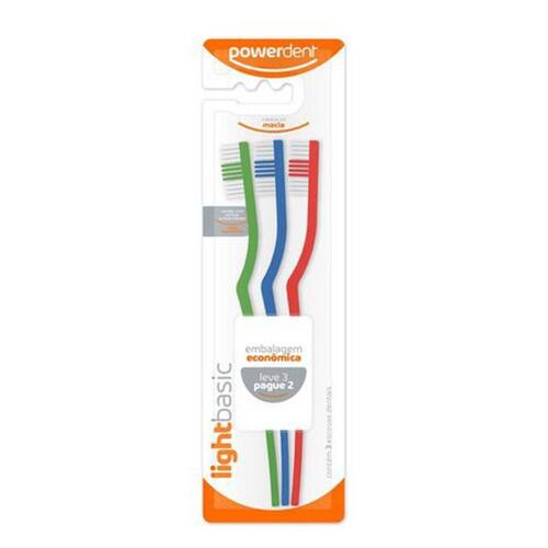 Powerdent 2190 Escova Dental Light Plus C/3 DESCRIÇÃO: A escova powerdent light plus foi desenvolvida para realizar uma perfeita higiene bucal,com uma cabeça ovalada alcança os dentes do fundo, com muito mais confornto durante o uso, o cabo possuí uma perfeita empunhadura maior controle a escovação.