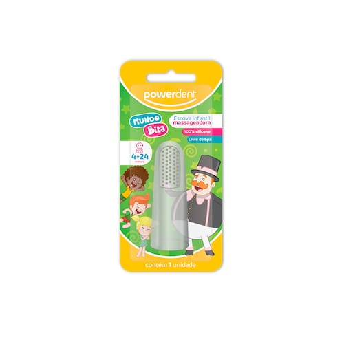 A escova infantil Massageadora Powerdent Mundo Bita é perfeita para uma higiene delicada na boca do bebê. Desenvolvida em silicone totalmente atóxico, livre de BPA e com uma textura ultramacia, é ideal para aliviar o desconforto no nascimento dos primeiros dentinhos.Como usar:Passo 1: Insira o seu dedo indicador no massageador.Passo 2: Escove cuidadosamente os dentes e/ou a gengiva do bebê.Informações importantes:Visite seu dentista regularmente, ele indicará o melhor tipo de escova para a criança. O uso do produto deve ser supervisionado por um adulto. Declarado isento de registro pelo Ministério da Saúde. Não compre se a embalagem estiver violada. Conserve em local limpo, fresco e seco.Composição:SiliconeMundo Bita © Mr. Plot Produções. Todos os direitos reservados.