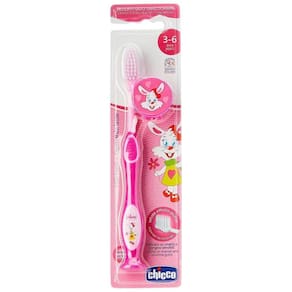 Escova de Dentes Rosa 3-6 anos - ChiccoAs novas escovas de dentes estão indicadas para as crianças entre os 3-6 anos, quando já têm dentes de leite.Características Técnicas:Cerdas muito suaves com tecnologia cônica - na parte de cima as cerdas são menores relativamente à parte de baixo. As cerdas são mais estáveis em baixo e mais flexíveis no topo.Extremidades, micro finas, para uma ação delicada sobre o esmalte e gengivas sensíveis.Cabeça com limpa-língua.Pega ergonômica e antideslizante.Com uma ventosa, útil quando a escova não estiver a ser utilizada.Com tampa para garantir a máxima higiene.Cor: RosaIndicação: 3 AnosMedidas do Produto:Altura: 24 cmLargura: 3 cmComprimento: 5 cmPeso: 300 gMedidas da Embalagem:Altura: 3 cmLargura: 19 cmComprimento: 25 cmPeso: 350 g
