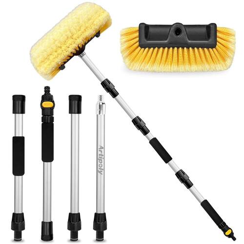 ARTIPOLY Escova de lavagem de carro de 183 cm com alça longa, escova de lavagem de carro de cerdas macias com alça extensível e fixação de mangueira e interruptor liga/desliga para carro, trailer, SUV, caminhão, barco, tapume de casa